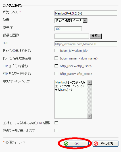 はい:PleskコントロールパネルにMamboへのアクセスボタンを設置します。