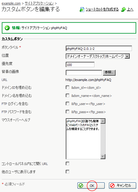 ボタンを設置するとphpMyFAQに簡単にアクセス出来るようになりますので「はい」を選択されることをおすすめします。